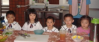 哥哥姊姊正在製作蛋糕喔!