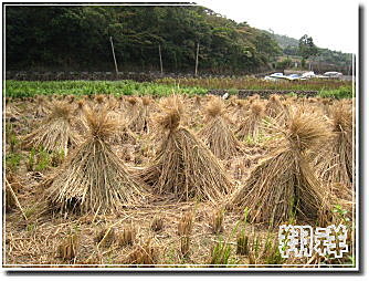因為我們要走進去看收割完的稻子被綁成一束一束的