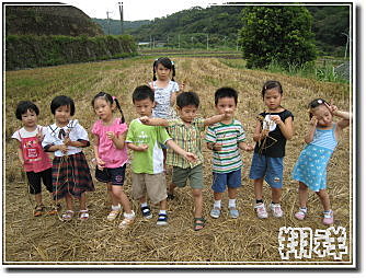 有些孩子們到收割好的稻田裡尋寶